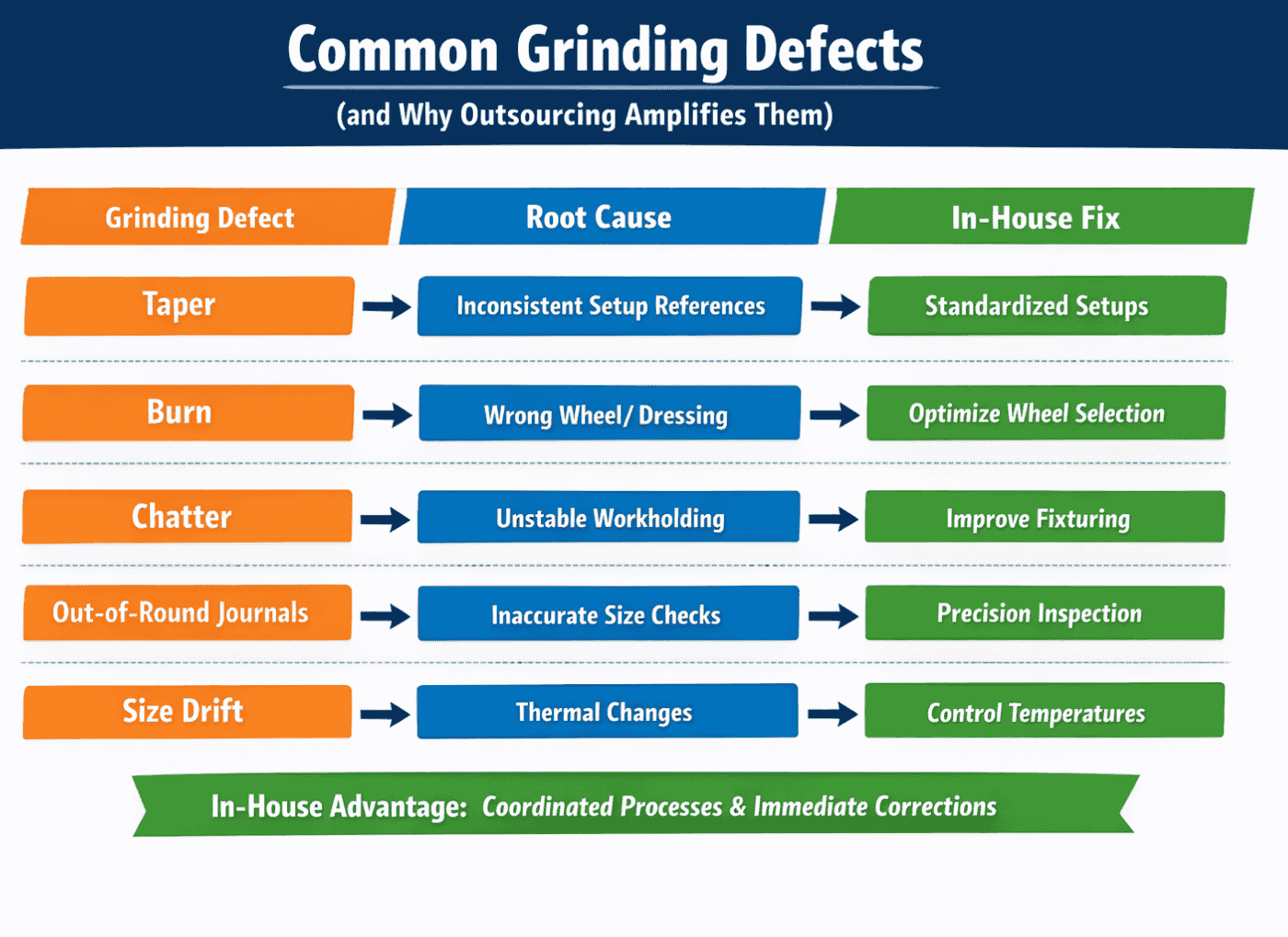 - Outsourcing grinding adds hand-offs, datum changes, and schedule risk